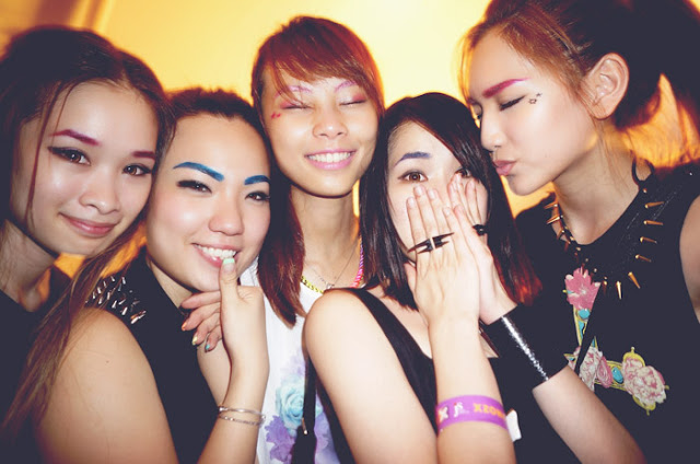 Anyway, me and the girls planned to do something different that night, COLORFUL EYEBROWS! Inspired by Pearypie, a famous make up artist from Thailand. I purposely went to Sephora before heading to the party just to use testers for the eyebrows lol #cheapskate, used pink eyeliners and eyeshadow, kinda fail at first but then I went home to touch up using pink lipstick and eyebrow mascara etc, simply brush them and tadaaaa....