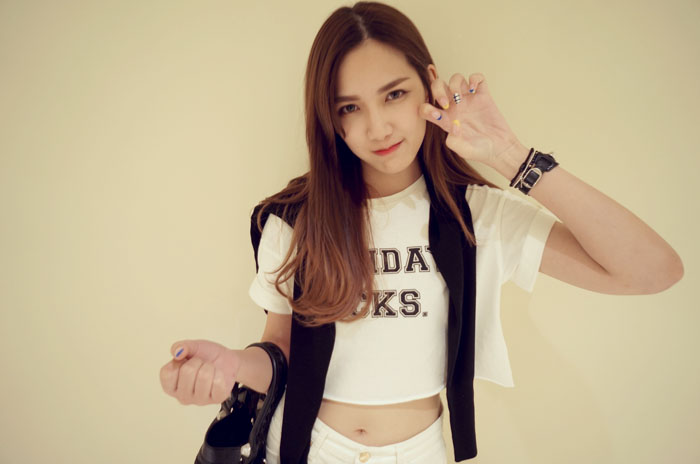 Today fashion is my all time fav look, crop top + ripped shorts, but this time it's in monotone. White on white! One thing bad about wearing white is we look extra plum in pictures :X BUT skinny isn't the trend lolllll. Healthy is! But you can also wear black on black to get the same monotone look.